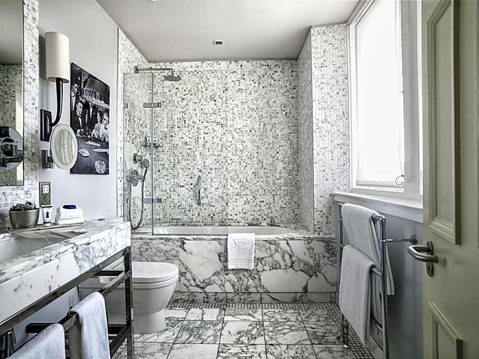 The private bathrooms contain Italian marble bathrooms with a bath and shower, as well as bathrobes and slippers, and complimentary toiletries from Forte Organics.